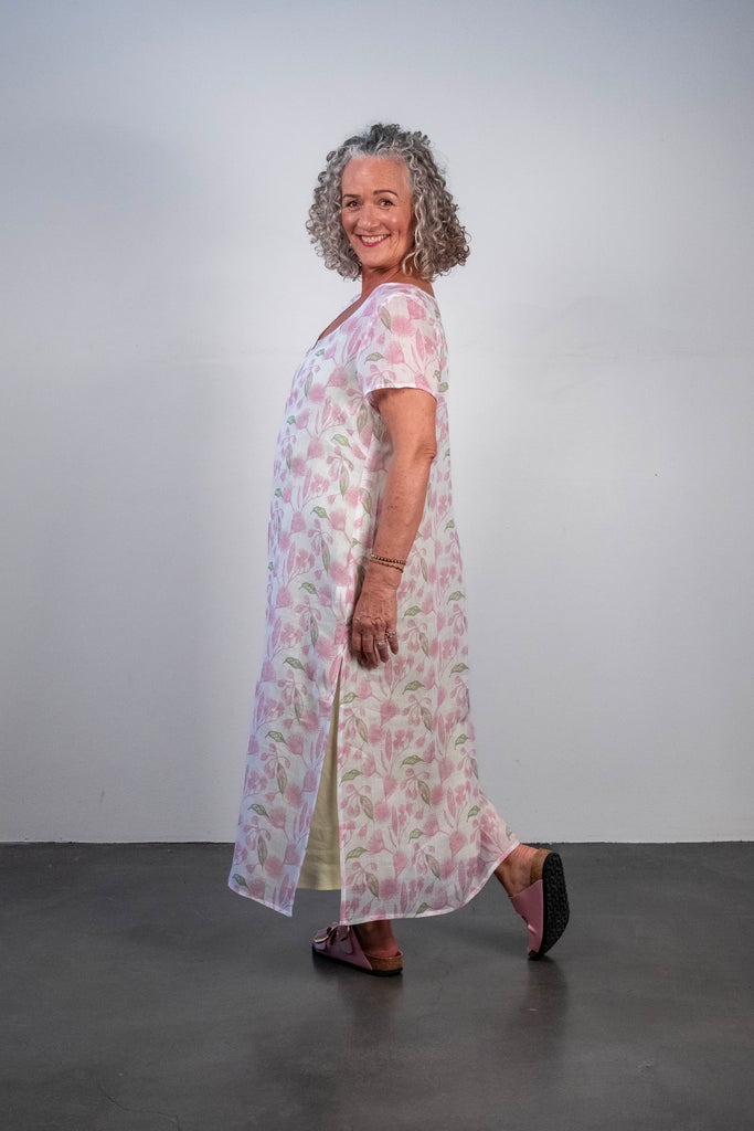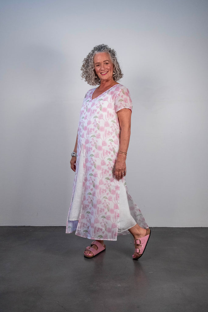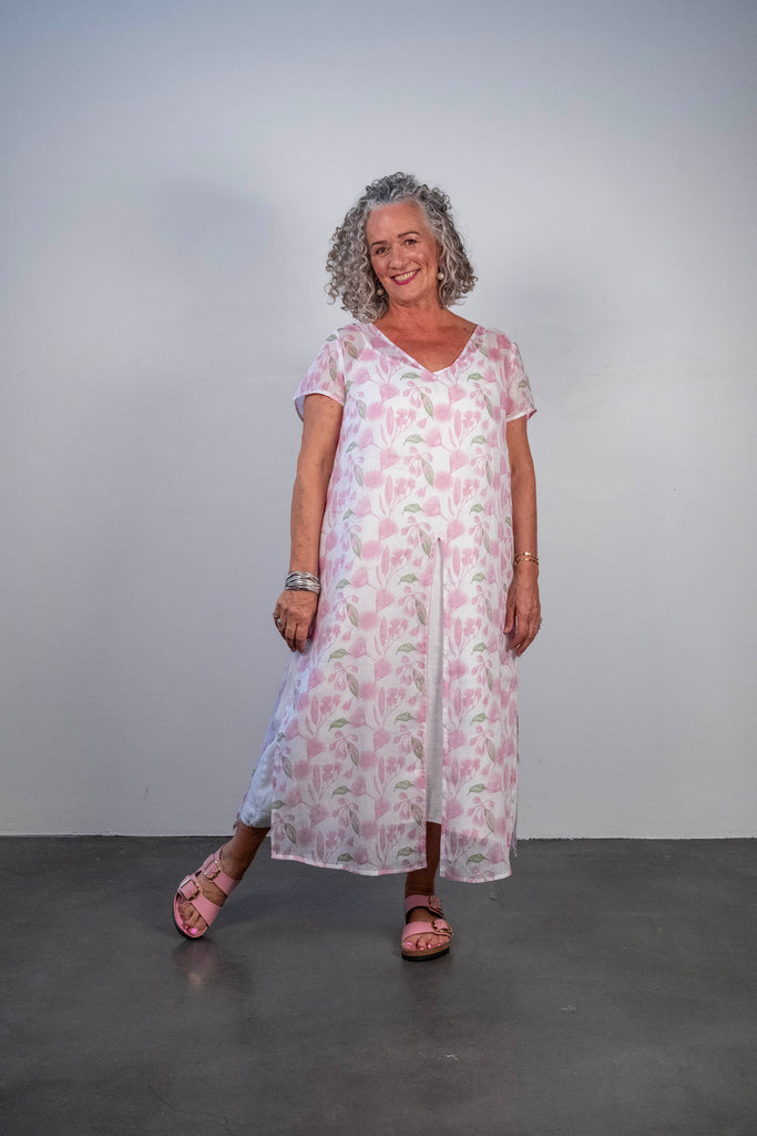 Ophelia is a gorgeous overdress with a V neck and high splits in centre front and either side. Great worn over our slip dress or pants.