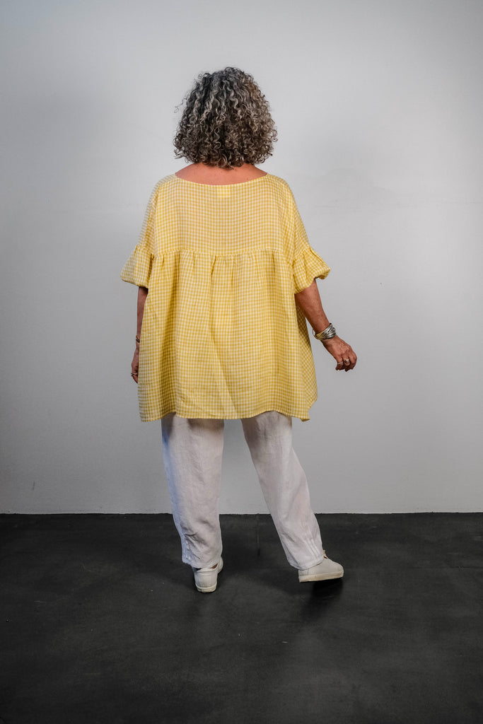 A longer version of our famous Molly top. The Large has a much wider sleeve.